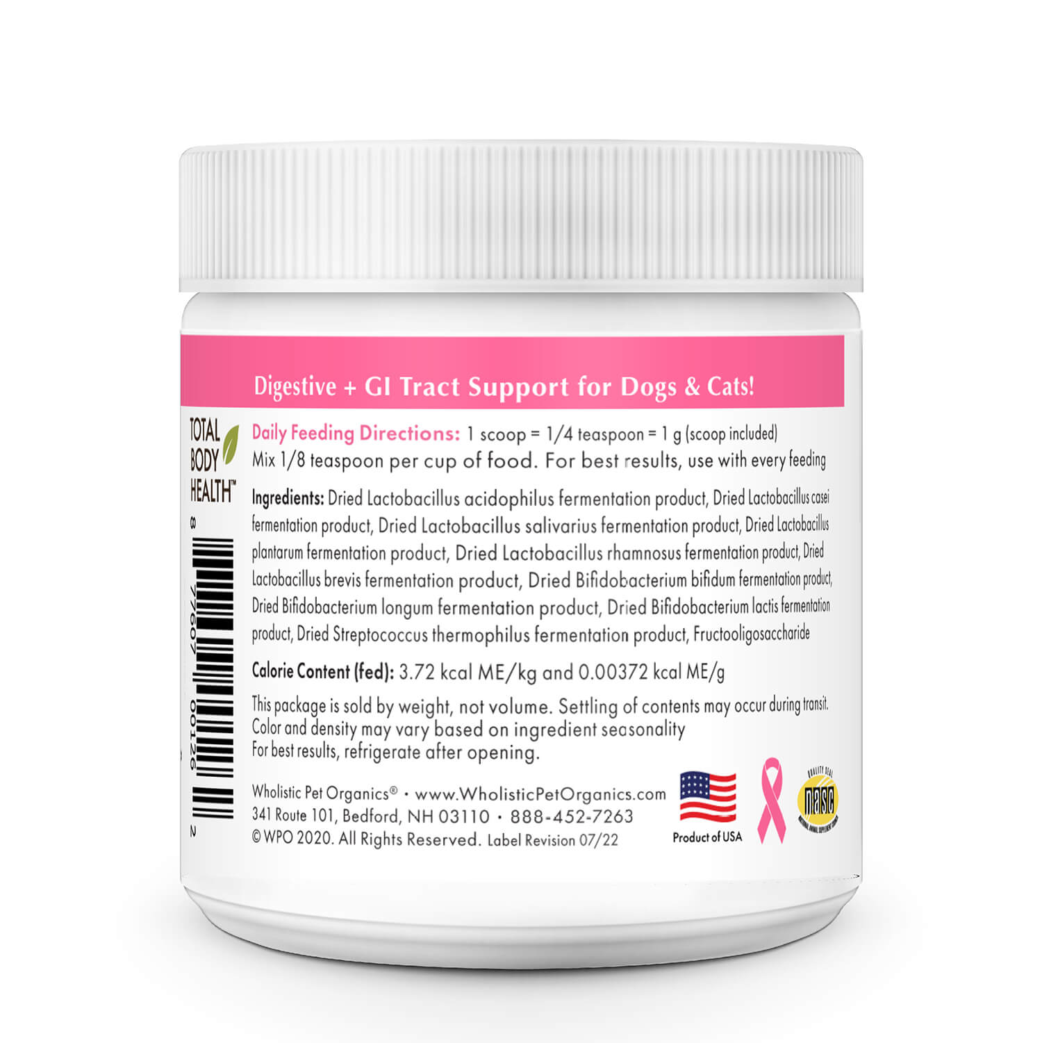 WholeBiotics™ contains no fillers, additives, or artificial flavors, making it a safe and natural way to support your pet's gut health. Add WholeBiotics™ to your pet's daily routine and watch them thrive!